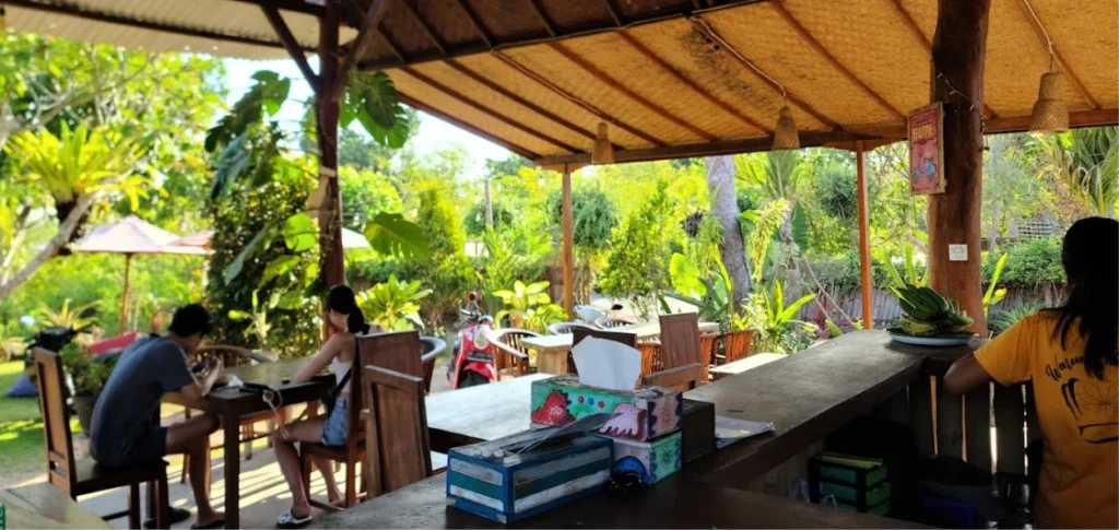 The Coconut Hut on Jl. Jungutbatu offers healthy dishes and Indonesian specialties. Open all day, it’s a perfect place for breakfast, lunch, or dinner, with indoor and outdoor seating to enjoy the relaxed island vibes.
