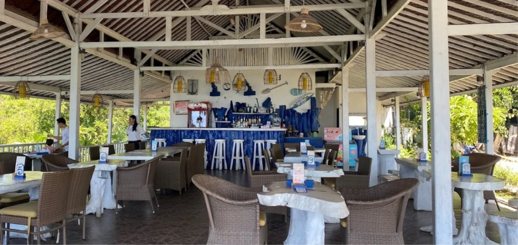 Indi Warung is famous for its fresh seafood and BBQ dishes, located near Mushroom Bay. With friendly staff and delicious grilled fish, prawns, and ribs, this cozy warung offers a great island dining experience at affordable prices. Perfect for seafood lovers.