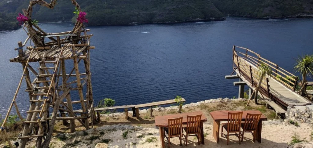 Park Cave Ceningan, perched on Nusa Ceningan’s cliffs, offers stunning ocean views and a serene atmosphere. Serving Indonesian and Asian dishes, including vegetarian and vegan options, it’s perfect for a relaxed meal or drink. Its scenic spot is also ideal for Instagram-worthy photos.